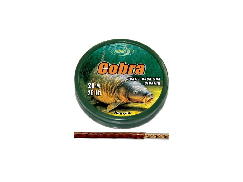 Jadro šnúrky je plávajúce - vhodná najmä na plávajúce a vyvážené nástrahy. Cobra je vyrobená z dvoch materiálov /fluoropolimer a dyneema/. Je hnedej farby, na tmavom dne je takmer neviditeľná. Šnúrka je pevná a oderuvzdorná – vhodná aj do toho najťažšieho terénu.