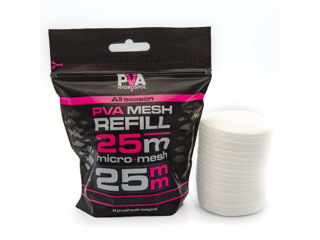 Náhradná PVA micro-mesh pančucha v priemere 25 mm a návinu 25 m. Pančucha 25 mm náhrada 25m PVA Hydrospol je pletená z kvalitných japonských vláken formou hustého micro-mesh.